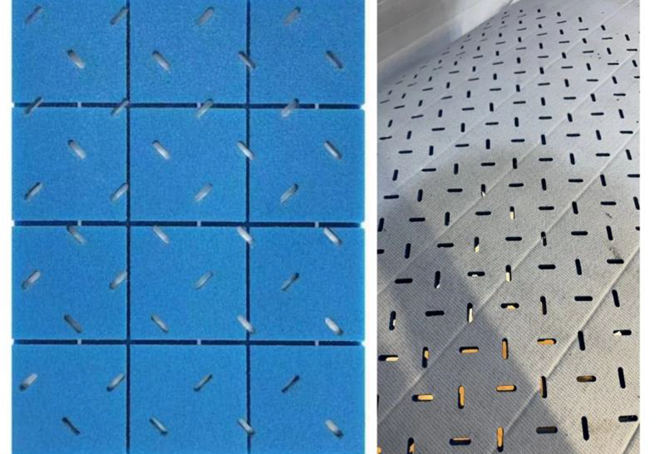 High density, thickness 20 mm, with more than 700 drain holes per square meter integrated.